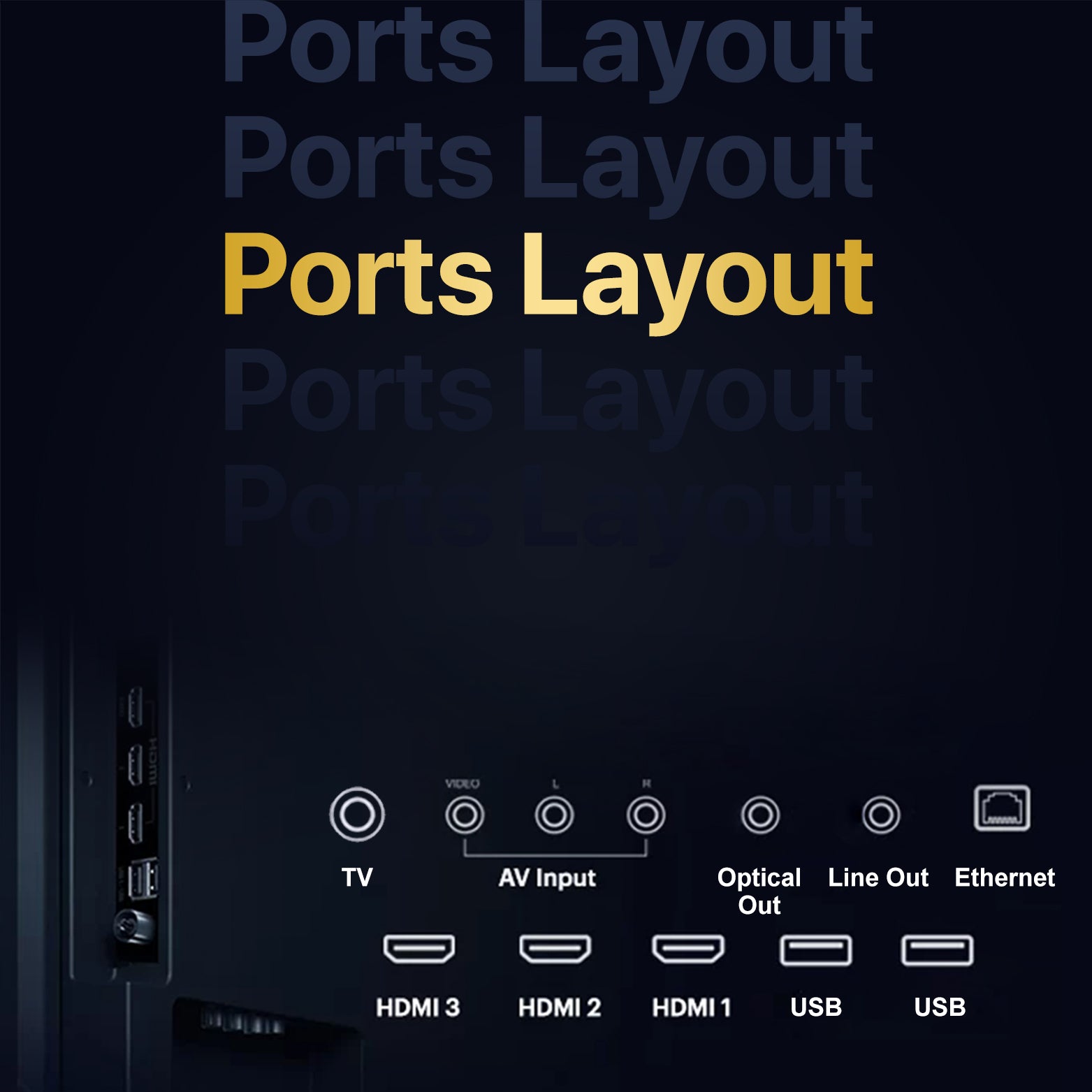 3 HDMI ports to connect set top box, Blu-ray speakers or a gaming console | 2 USB ports to connect hard drives or other USB devices | IR Port to control connected devices like DVD / STB Players | 1 Headphone Jack | 2 AV Input Slot | 1 RF Slot|Bluetooth|eARC HDMI port| Optical | Lan In